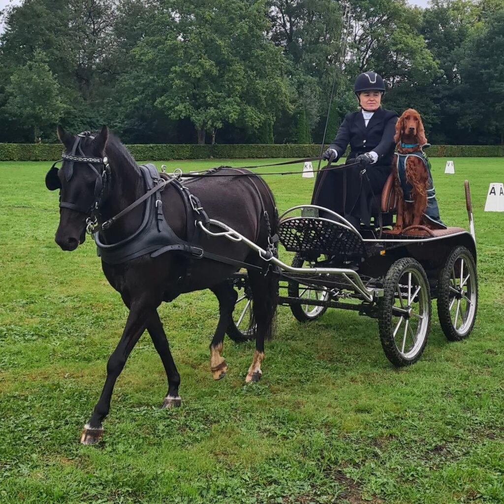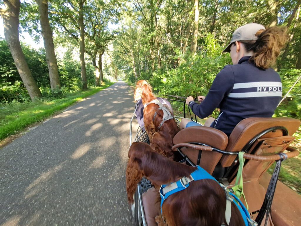 Bij de meeste evenementen, of we nu meerijden of alleen komen kijken, gaan onze twee Ierse Setter dames Lexie en KT mee. Inmiddels kennen veel mensen ons ook als ‘die menners met de rode honden’, en herkennen ze vaak eerst de honden en dan pas zien ze ons.